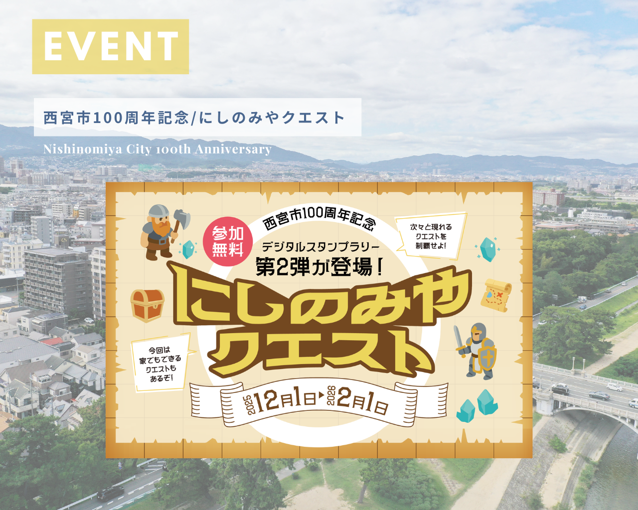 西宮は四季折々の見どころや魅力的なアミューズメント施設が多数あり、住む人をはじめ、訪れる方たちにも楽しんでいただける街です。ここでは、おすすめスポットをエリア・ジャンルで見つけることができます。