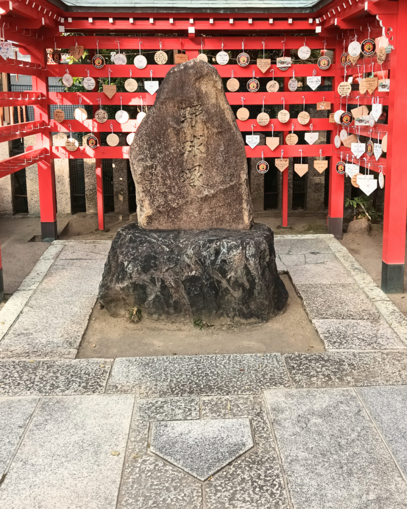 境内には、岡田彰布元阪神タイガース監督の揮毫により建立され、野球の神様を祀る「野球塚」や、ホームベース型の敷石、故・星野仙一氏揮毫のボール型モニュメントなど、野球にちなんだスポットが満載。